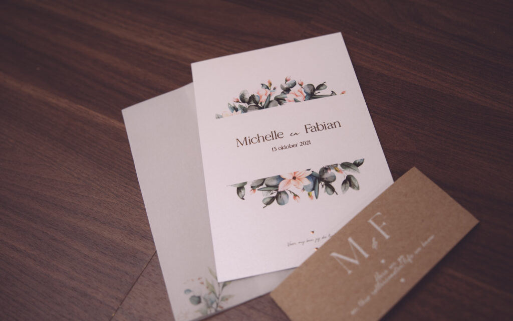 Gaya kan elk kaartje voor je maken. Ze helpt je meedenken met het ontwerp, stuurt verschillende soorten papier naar je op waaruit je kan kiezen en kan al het overige (bv menukaarten, gastenboek) aanpassen naar de look van je kaartje.